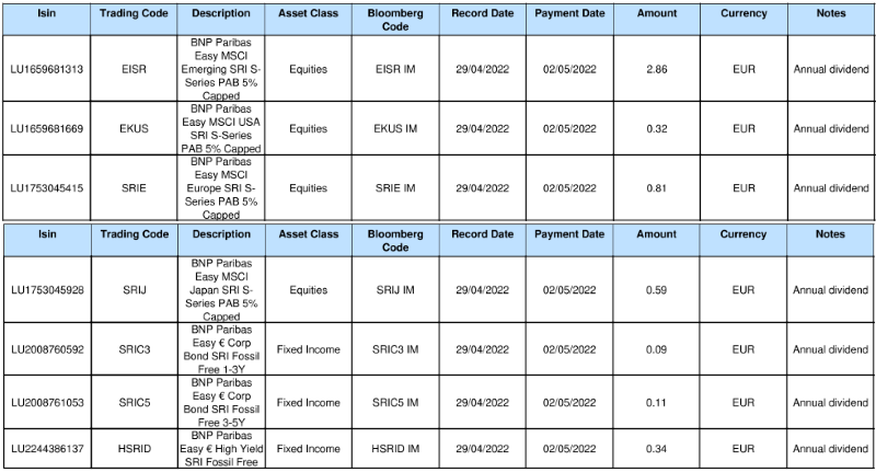 ETFs werden ab dem 28/04/2022 ex-Dividende gehandelt
