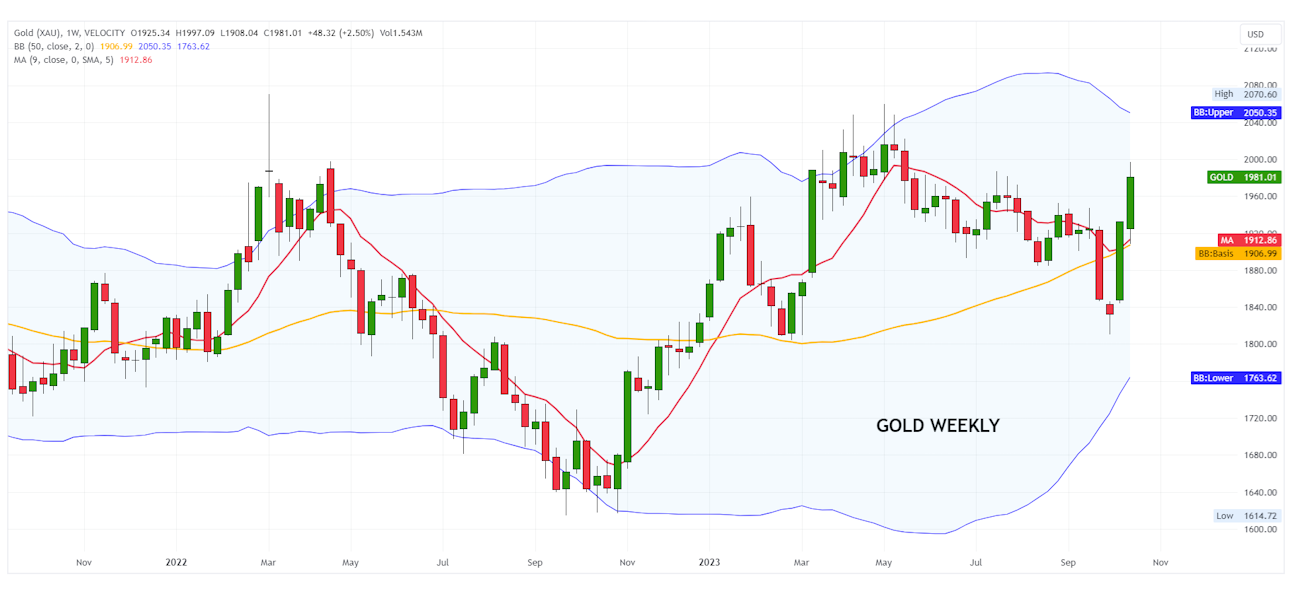 Nachdem die Preise des gelben Metalls Anfang Oktober auf einen Tiefstand von 1.810 $ gefallen waren, haben sie tatsächlich einen schnellen Sprung nach vorne gemacht und befinden sich nun in der Nähe der wichtigen psychologischen Schwelle von 2.000 $.
