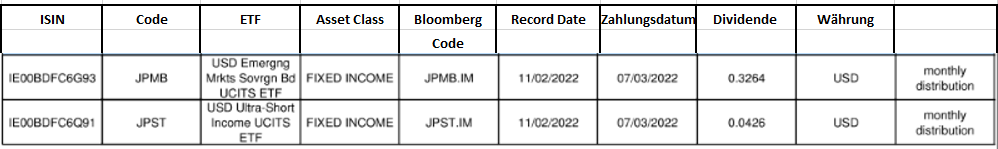 ETFs werden ab dem 10/02/2022 ex-Dividende gehandelt.