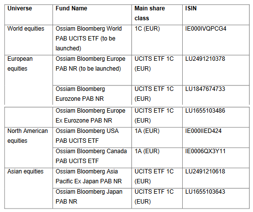 Ossiam hat am 6. September die Markteinführung von acht ETFs auf Basis der Bloomberg Paris–Aligned Benchmarks („PAB“) angekündigt.