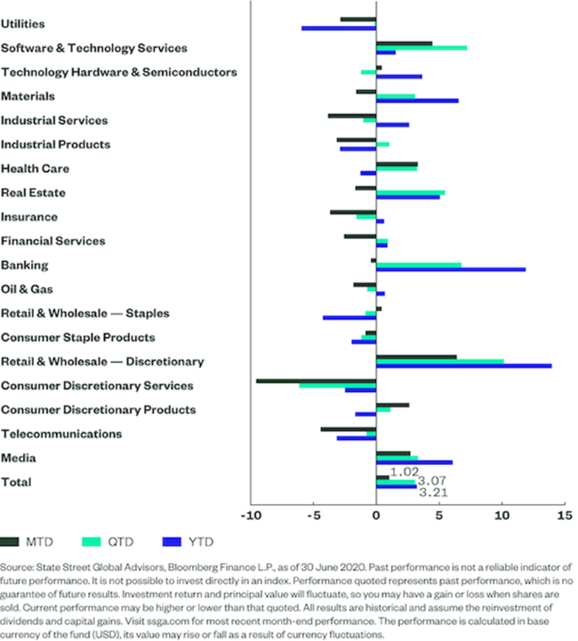 Abbildung 2: YTD-Performance nach Sektor (in USD unhedged)