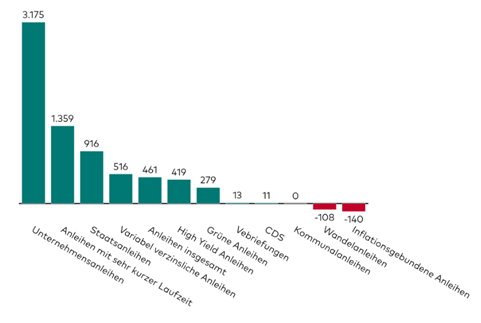 ETFs auf Unternehmensanleihen und Anleihen mit sehr kurzer Laufzeit an der Spitze