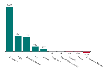 Nettoneuvermögen von Anleihen-ETFs nach Region: laufender Monat (Mio. USD)