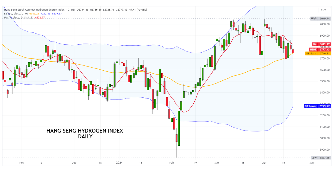 Nachdem der Hang Seng Hydrogen Index Anfang Februar auf einen Tiefstand von 5.827 Punkten gefallen war, setzte er zu einer wichtigen Aufwärtsbewegung an und bewegte sich in die Nähe von 7.050 Punkten.