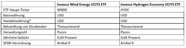 Die neuen ETFs Invesco Wind Energy UCITS und Invesco Hydrogen Economy UCITS bieten Anlegerinnen und Anlegern die Möglichkeit für ein gezieltes Engagement in zwei der wichtigsten Lösungen zur Erreichung einer Netto-null-Kohlenstoffwirtschaft.